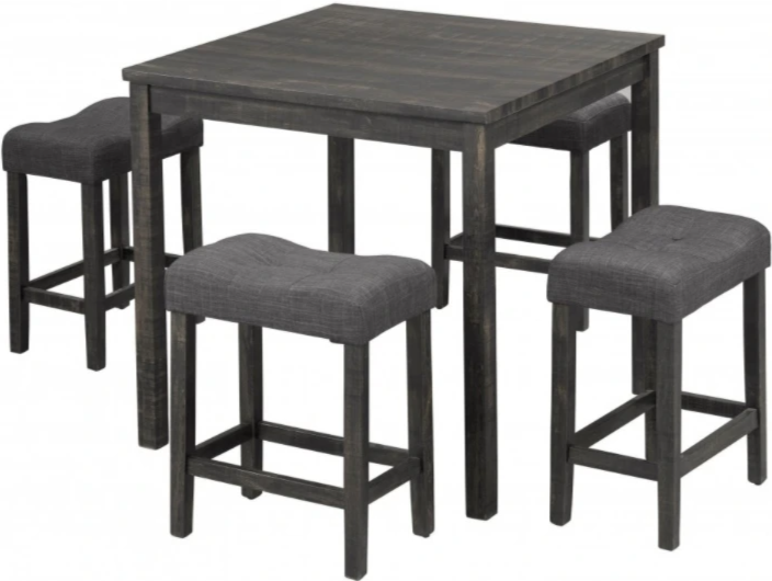 Each seat features a backless saddle design with a 100% polyester upholstered fabric, offering an inviting feel. Built with durability in mind, this set ensures your family and guest enjoy a comfortable dining experience, plus this set comes awash in a neutral dark grey finish, allowing it to blend with a variety of colour schemes.