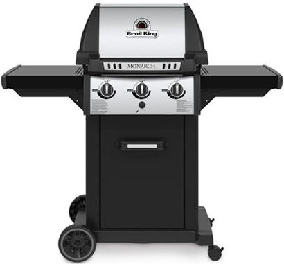The Monarch™ 320 features 330 sq. in. primary cooking surface and includes 3 stainless steel Dual-Tube™ burners, reversible heavy-duty cast iron cooking grids, stainless steel Flav-R-Wave™ cooking system, and electronic ignition. The Monarch™ 320 features painted steel drop-down side shelves and enclosed cabinet base.Read More