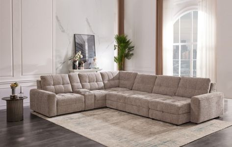 Jasper sectional offer the look, feel and easy care of a fabric, crafted through extensive research and rigorously tested to ensure the highest quality. Each piece features sinuous springs in the seats to prevent sagging, 2.0 foam with Dacron and a hardwood frame. Power sliders turn a seat into a lounger. End chaise opens for storage. Fabric is Polyester Brisbane Jasper.Read More