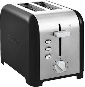 Simplify your morning routine with this elegant 2-slice toaster. Toast or defrost your way to a delicious healthy breakfast with this 2-slice stainless steel toaster from Kenmore. With its extra-wide slots and self-adjusting bread guides, this toaster accommodates everything from English muffins to Texas toast, and the easy-to-use numbered dial offers 9 shade settings so you have plenty of options to suit your family’s individual taste.Read More