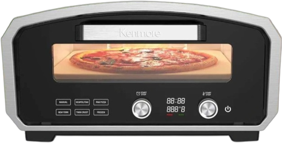 Cook delicious restaurant-quality pizzas in your own backyard! Kenmore's portable electric pizza oven features a weather-resistant housing rated for indoor or outdoor use so you can enjoy your favorite pizzeria-style pizzas anywhere there is a power source. The 1800 watt countertop oven comes with a pizza stone and peel and cooks a 13-in pizza in only 3 min with ultra-high temperatures up to 850°F ensuring authentic stone-baked, wood-fired flavor and texture.Read More