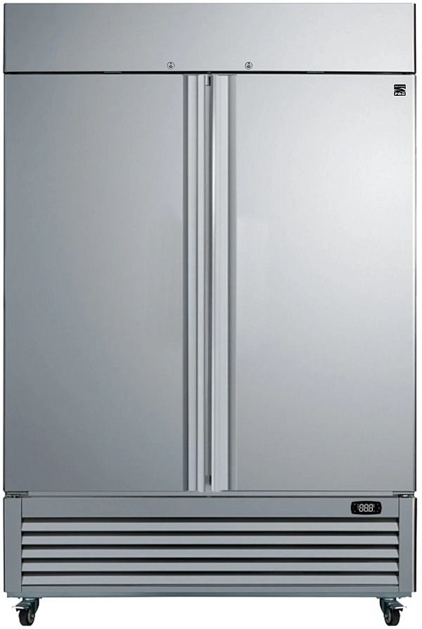 Reach-in freezer is ETL-certified for safety & sanitation. Self-closing solid doors have a 90-degree stay-open feature for large items. 4" heavy-duty casters with brakes come pre-installed for easy movement.