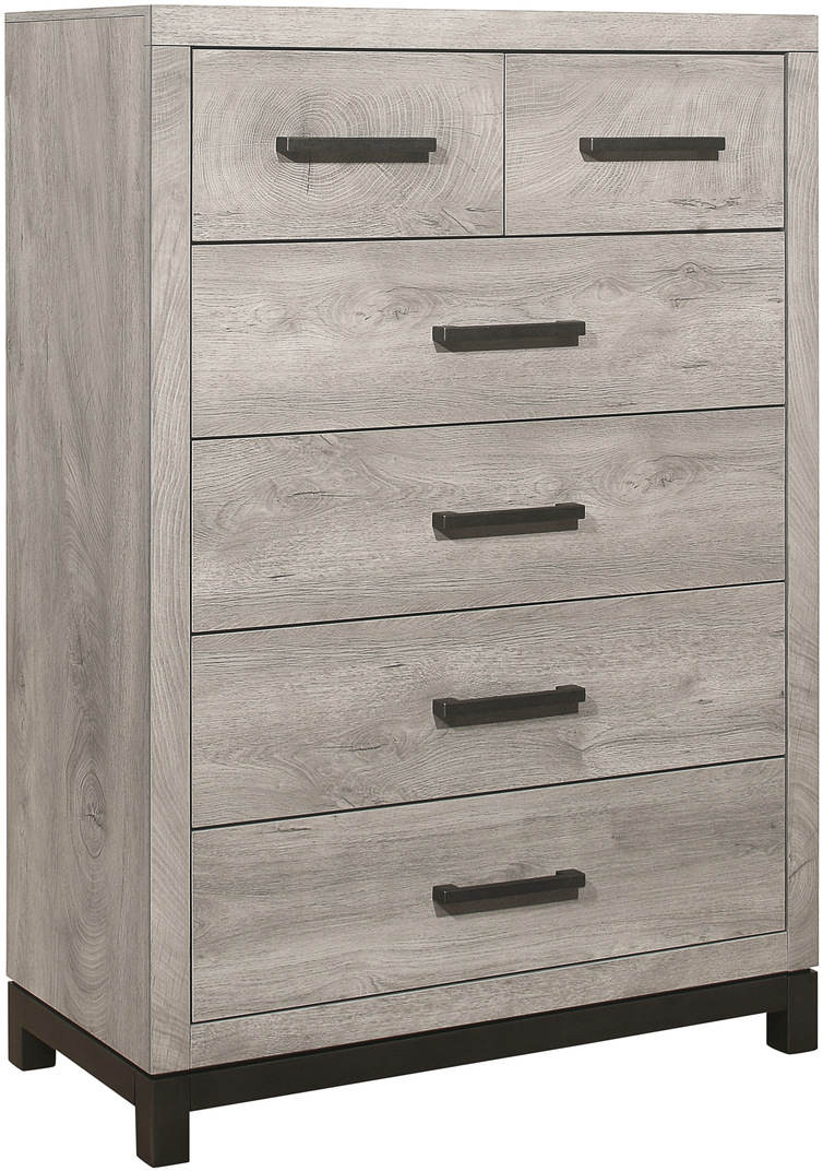 The sleek design of the Zephyr Collection pairs clean lines with modern convenience to create a style that will be the perfect palette for your design aspirations. Visually tying the chest together are the painted metal-finish banding of the base rail and the metal bar hardware that fronts each drawer.Read More