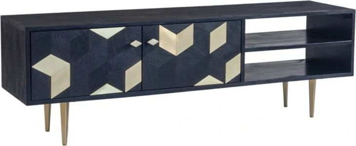 A sweet escape for all of your things. The Sapporo media cabinet features darkened natural mango wood juxtaposed with bright geometric accents of brass foil. Its two large doors open to reveal plenty of storage for your entertainment devices, while an open shelving unit offers even more storage opportunities.Read More