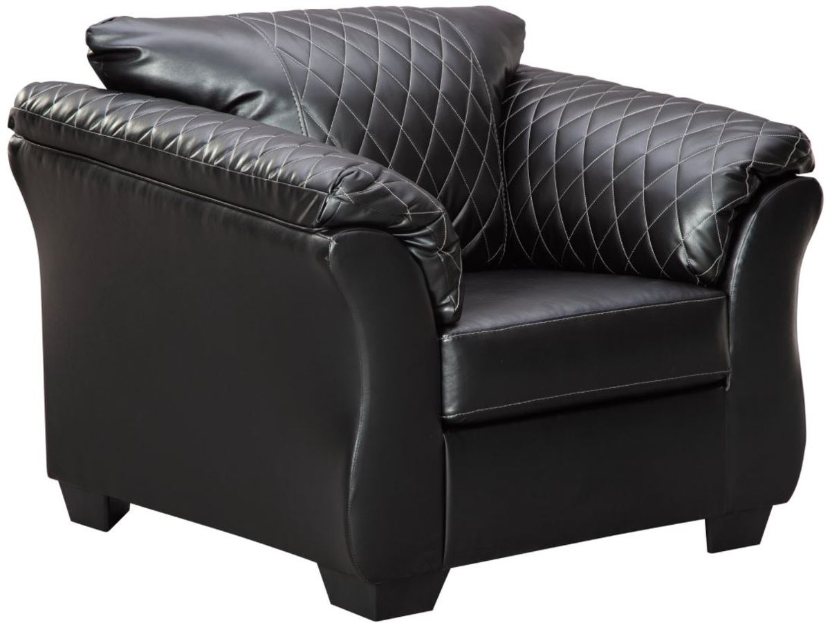 Great design draws inspiration from various places, and this chair is no exception. Diamond-stitched pattern seen in high end handbags and luxury car interiors is simply irresistible when it adorns this sumptuous, generously padded arm chair. Durable easy-care leather alternative delivers the look you crave at a price that’s decidedly easy on your purse.
