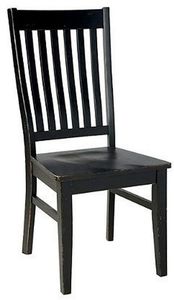 Sit in cottage flair and simplicity. The inviting farmhouse look of this side chair is unmistakable. Crafted for years of satisfaction, it's finished in an attractive rustic black with slat back styling and scooped seat.Read More