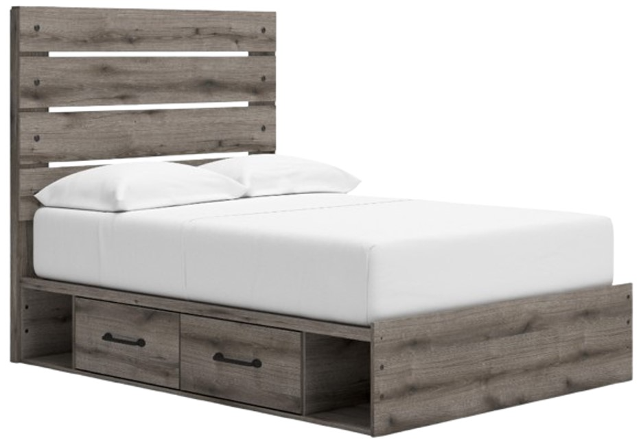 Includes panel headboard/footboard, 2 under bed storage units and roll slats