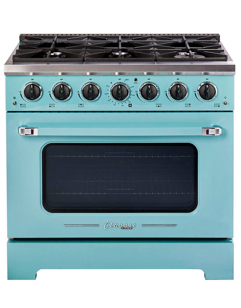 The 30” Classic Retro range by Unique transports you back to the ‘50s with its iconic retro design and chrome finished accents. Pro Convection cooking circulates heat for incredibly even distribution while the waist-high broiler provides the option of intense searing.Read More
